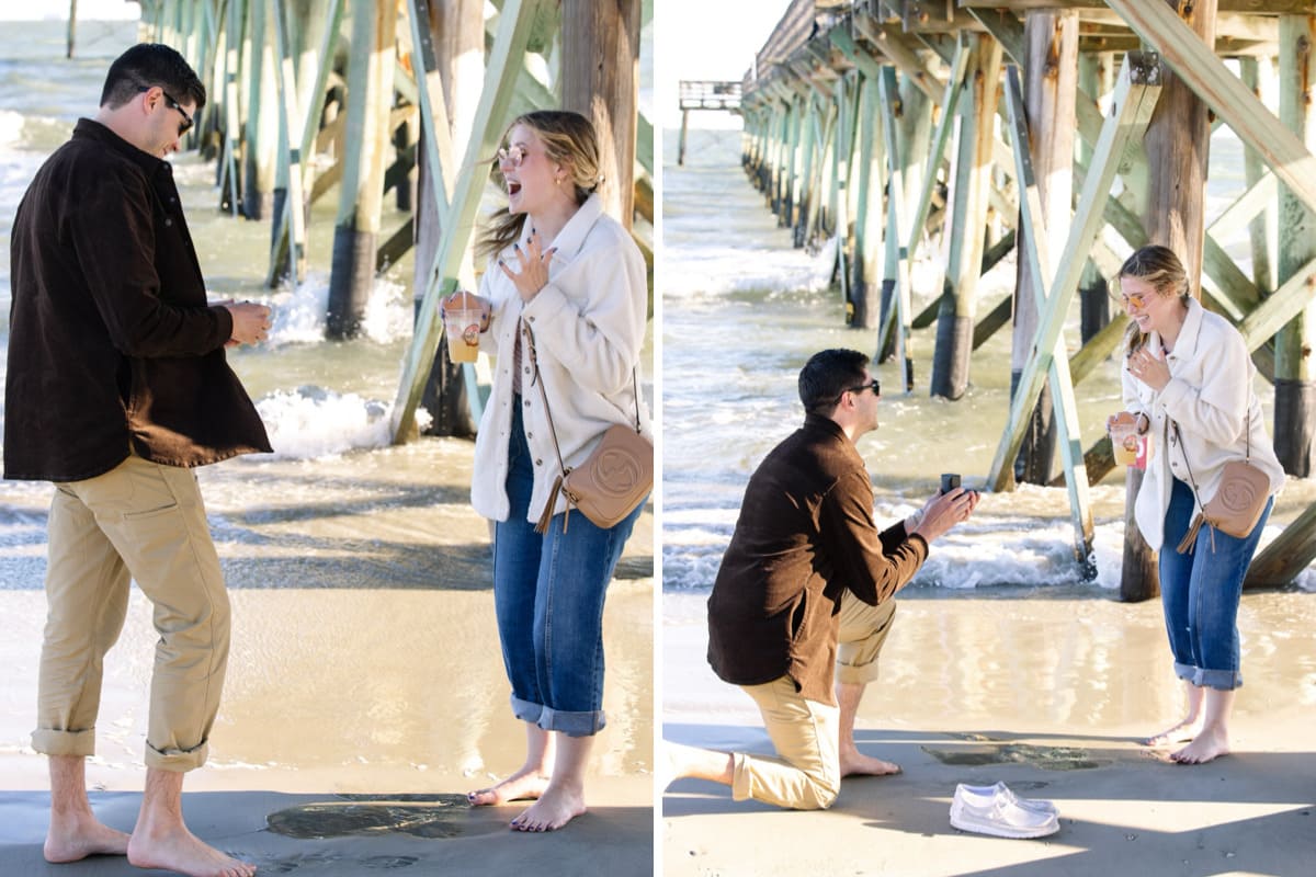 There’s something magical about a beachside proposal, especially when it takes place in one of Charleston’s most scenic coastal spots — Isle of Palms. On October 9th, Jordan surprised his girlfriend Christen with a beautiful proposal near the pier, and we were honored to capture every moment.